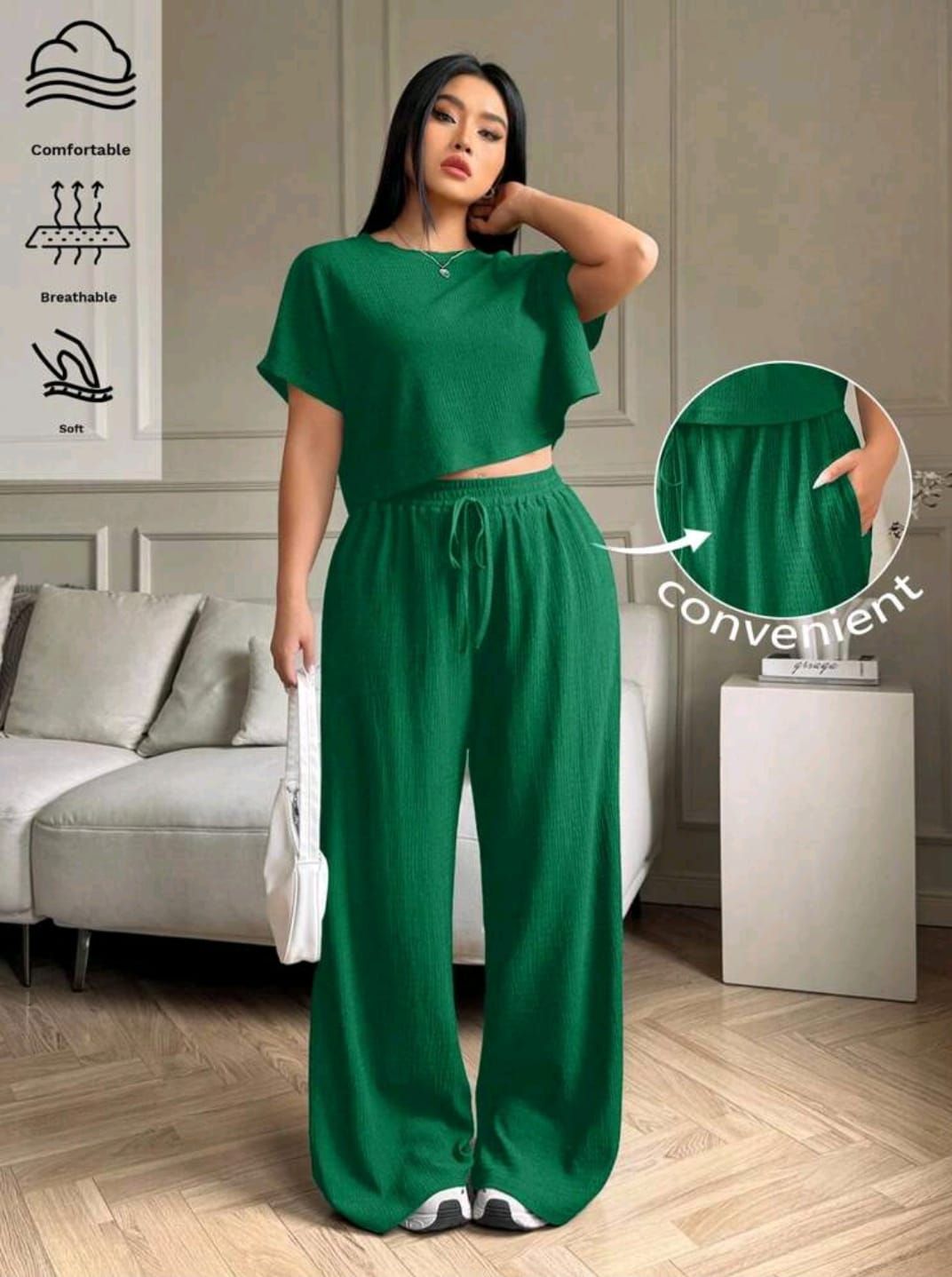 Conjunto Baggy Verde Oscuro tela HAWAI con Top Oversize