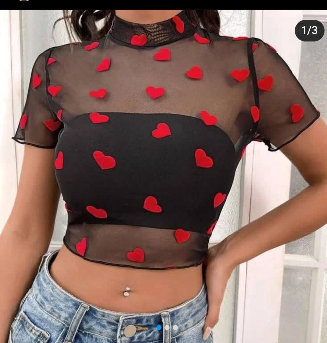 Polera con cuello alto de corazones